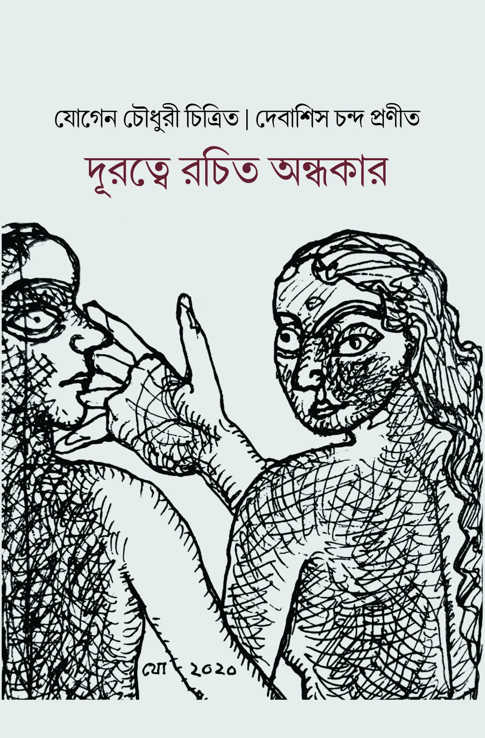 ‘কলকাতা, ২৩ মার্চ, ২০২০। বিকেল ৫টায় নেমে এল লকডাউনের খঁাড়া। তারপর মাসের পর মাস স্তব্ধ জনজীবন। অন্তরিন জীবনে তছনছ হয়ে গেল সব কিছু। এক ধাক্কায় পাল্টে গেল যাপনের ধারাপাত। করোনা ভাইরাসের আক্রমণে ‘বিপর্যয়ের কানাগলি’তে দিশেহারা সবাই ‘এঁটেছে খিল অন্দরে বাহিরে।’ পেছনের মলাটে বইটি সম্পর্কে যে লেখা রয়েছে তা থেকে এই উদ্ধৃতি। এ থেকে বোঝা যাচ্ছে আচমকা নেমে আসা অতিমারীর বিপর্যয়ের ফলে যে দূরত্ব রচিত হল মানুষে মানুষে, যে অসহায় পরিস্থিতি তৈরি হল তারই নানা দিক উঠে এসেছে দেবাশিস চন্দের কাব্যগ্রন্থ ‘দূরত্বে রচিত অন্ধকার’–এ। সঙ্গতে রয়েছে যোগেন চৌধুরীর অসাধারণ সব ছবি। এই বই কবিতা–ছবির বিরল যুগলবন্দি। শুধু আঁকা নয় যোগেন চৌধুরী পুরো বইটি ডিজাইন করে দিয়েছেন। গতানুগতিকতার বাইরে এ এক অন্যরকম জলতরঙ্গ বাংলা বইয়ের গ্রন্থসজ্জায়। ‘নতুন রকম কিছু’ শিরোনামে যোগেন চৌধুরী লিখছেন— ‘অনাকাঙ্ক্ষিত মৃত্যু, সমাজের নানাবিধ বিপর্যয়, পরিযায়ী শ্রমিকদের দুর্দশা, কর্মহীনতা— সব কিছু কবিকে গভীরভাবে নাড়া দিয়েছে। তার কবিতার মধ্য দিয়ে আমরা এক ‘অন্ধকার থেকে আরেক অন্ধকারের দিকে—’ পৌঁছে যাই। আরও লিখছেন শিল্পী—‘কাব্যগ্রন্থটির সঙ্গে আমি বিশেষভাবে জড়িয়ে আছি। বইয়ের প্রচ্ছদ, ভেতরের রেখাচিত্র এবং গ্রন্থসজ্জার দায়িত্ব আমাকে নিতে হয়েছে। আমি সেক্ষেত্রে প্রথাগত নিয়মের বাইরে গিয়ে নতুন রকম কিছু,করার কথা ভেবেছি।’