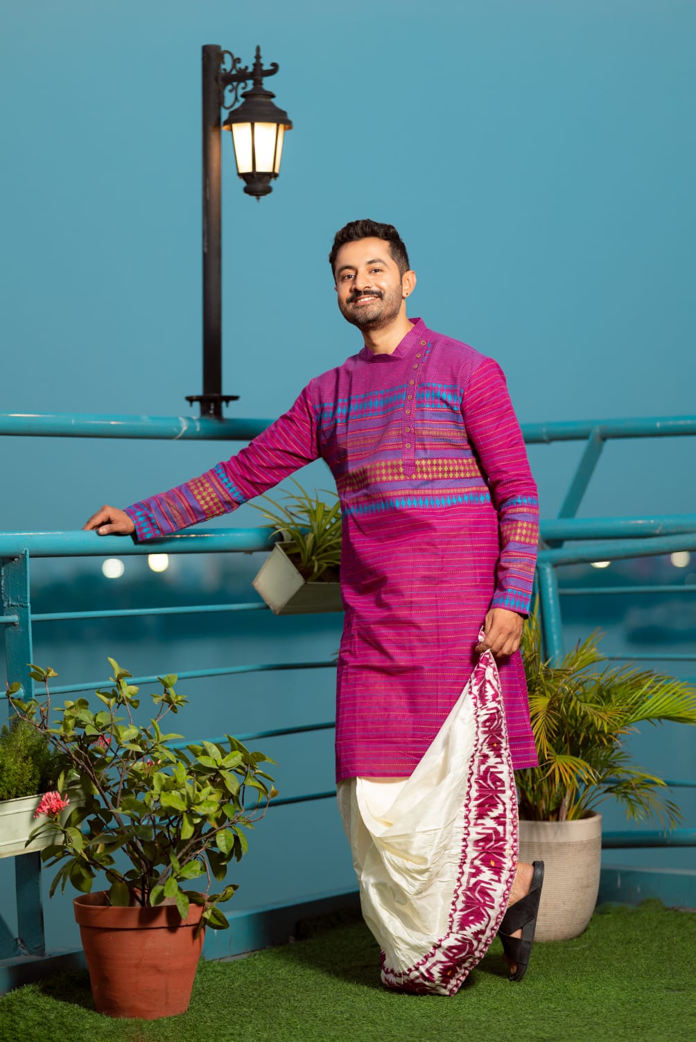এবছর বেগুনি রংয়ের চাহিদাও ভীষণ রকম। তাই বেগুনি রংয়ের পাঞ্জাবিতে আসাম খাদির কাজ ফুটিয়ে তুলেছে রাই কিশোরী। সঙ্গে রাতের অনুষ্ঠানের জন্য বেগুনি অর্গানজা শাড়ির সাথে গাঢ় নীল রঙের জ্যাকেট একদম অন্যরকম একটা লুক দেবে আপনাকে।